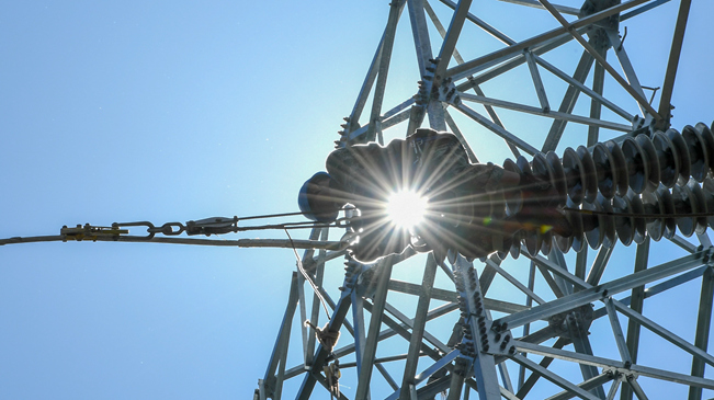 8月6日,几名送电工在吉林省长春市城郊的一处输电铁塔上施工作业。 吉林省长春市连续多日出现高温天气,国网长春供电公司输电运检中心的送电工们每天清晨开始作业,不畏烈日“烤”验,坚守工作岗位,确保工程按计划完成。