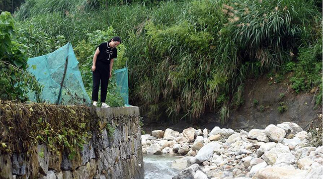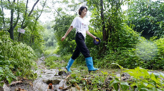 7月1日,重庆市永川区永钢村“古家坳不稳定斜坡”的监测员侯芳走在崎岖的山道上,前往地质灾害点进行巡查。