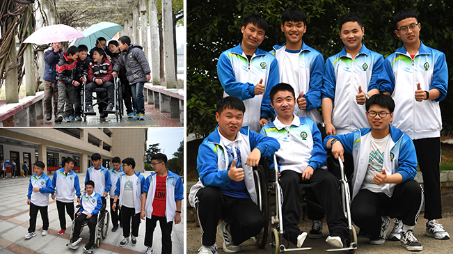 教室永远在一楼,座位永远是第一排,出门就有同学抱,轮椅后总有温暖的手。从小学到高中,程东东身边始终有一群同学守护着他,用爱传递着“接力棒”。