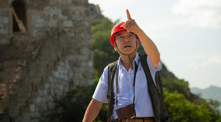 一根木棍、一部相机,烈日下,64岁的长城修缮师程永茂爬上了有400多年历史的箭扣长城,多年来的自然侵蚀和人为破坏使这段长城残损严重。从最低点“箭扣关”开始,踏过坑洼的城砖、翻过高耸的山崖,一路向东南1000多米,直至海拔990米高的敌楼“正北楼”,这是程永茂的行进路线。