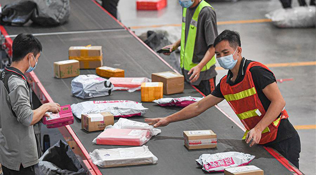 临近“双十一”,位于海口的顺丰速运海口美兰中转场一片繁忙景象。工作人员借助分拣设备,抓紧时间分拣、打包快递,保障快递在“双十一”物流高峰期间正常流转。