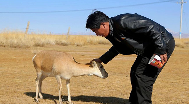 初冬的青海湖畔,芳草萋萋,气温渐凉。一只年幼的普氏原羚漫步在草原上,身上的毛色几乎与枯黄的牧草融为一体。接近一户人家的时候,它突然加快了脚步,欢快地奔跑了起来。