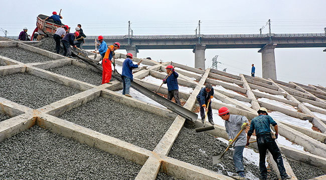 10月26日,在四川省南充市顺庆区荆溪街道辖区的潆溪河防洪治理工程现场,如同玉带一般的防洪堤蜿蜒在潆溪河上,工人们正抢抓有利时机建设防洪堤。