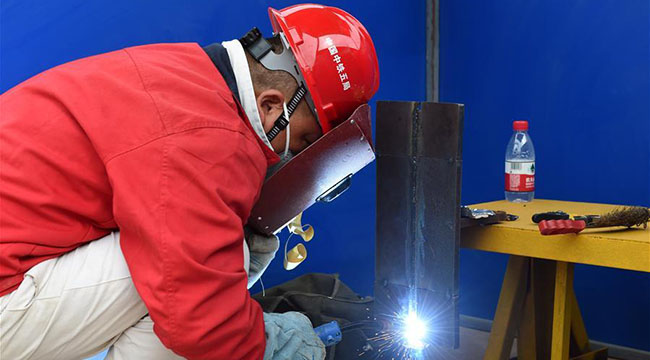 10月29日,在焊接技能竞赛现场,评委对选手现场制作的试件进行外观评审。 当日,一场焊接技能竞赛在中国中铁四局承建的引江济淮工程淠河总干渠钢渡槽项目部展开,通过竞赛,参建方焊接技术能手展示技艺、相互学习,共同提升技能水平。