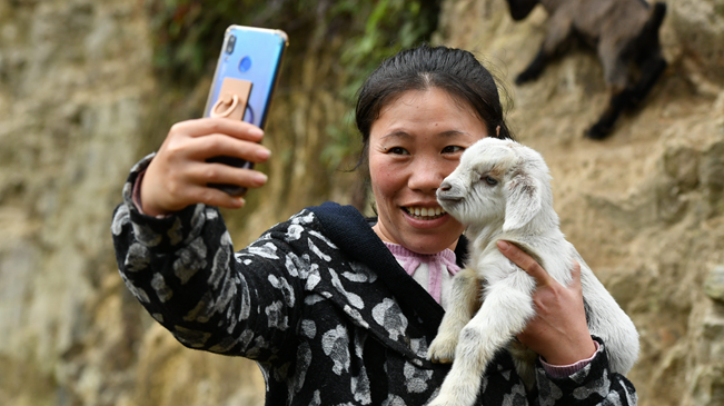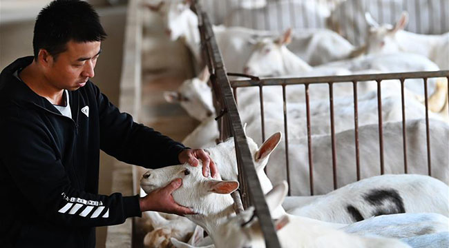 天刚蒙蒙亮,向斌就提着一筐草料走进自家羊圈。原本安静的羊圈瞬间喧闹起来。近200只膘肥体壮的奶山羊欢实地跑到食槽边吃草,几只小羊羔不时从围栏缝隙中探出头来,舔舐向斌的手。