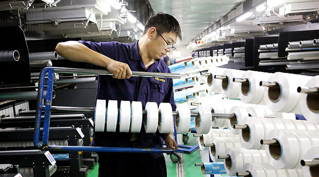 10月9日,江苏连云港经济技术开发区一家企业生产车间,工人正在生产线上忙碌。国庆和中秋长假过后,江苏省连云港市众多企业恢复了工作状态,工人们陆续回到工作岗位,加紧开始生产订单产品,车间处处一派繁忙景象。