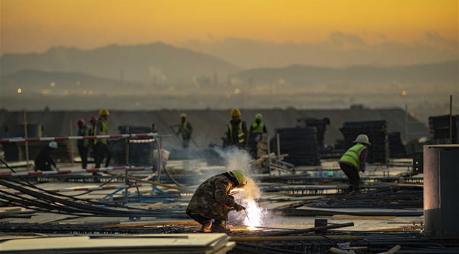 近日,新疆乌鲁木齐机场改扩建工程航站楼施工进入主体结构封顶冲刺阶段,来自中建三局等施工单位的近千名工人忙碌在工地上。国庆、中秋假期,施工现场塔吊运转、人员穿梭、机械轰鸣,依旧一片繁忙。