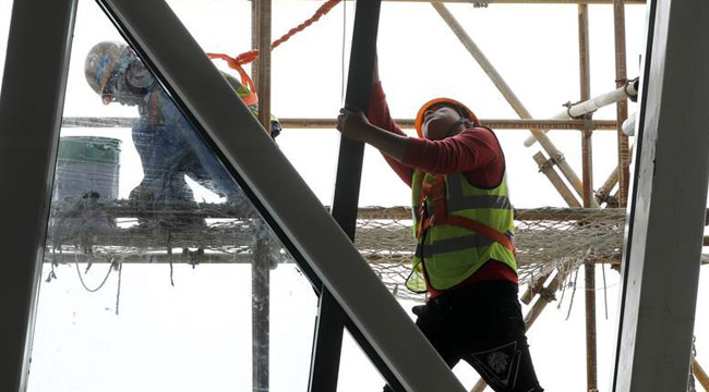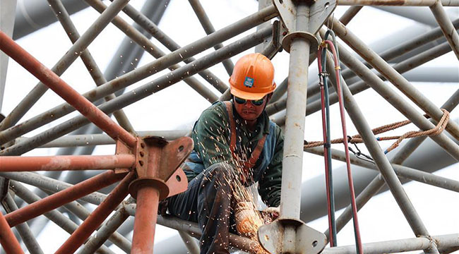 10月4日是中秋和国庆假期第四天,在河南省科技馆新馆建设项目工地,不少工人坚守工作岗位,在忙碌中度过假期。