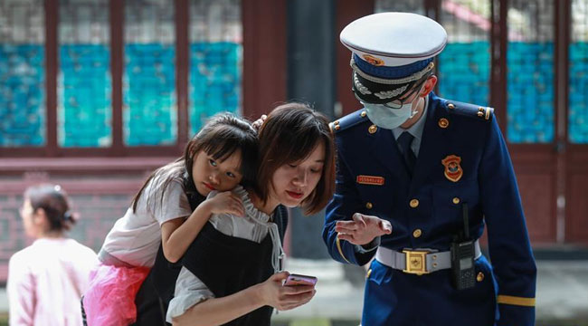 国庆中秋节长假期间,一群身着“火焰蓝”工作服的森林消防员在四川青城山-都江堰景区执勤巡查,成为一抹亮丽的风景线。