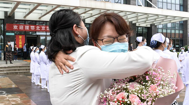 10余名北京援鄂医护人员代表受邀回访武汉,在武汉协和医院西院和医疗队曾经的居住地,昔日的医疗队队员与武汉的抗疫“战友”重聚。
