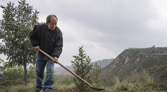 陕北榆林市靖边县龙洲镇深处有一座山叫齐山,当地人认为这里是附近齐姓人的老家。66岁的退休教师齐军祥居住在齐山的土窑洞里,20年来他植树修路,完成了绿化一座荒山的奇迹。