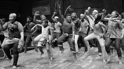 这部影片的前身,是创立于2000年的开普敦港口剧团初创时期推出的同名歌剧,与剧团后来根据普契尼歌剧《波希米亚人》、莫扎特歌剧《魔笛》、莎士比亚叙事长诗《维纳斯与阿多尼斯》等改编的作品一样,都是将西方经典文艺作品放置在南非的城镇背景下,以音乐剧场的形式讲述(其中2015年剧团联合制作的《魔笛》获得奥利弗最佳音乐剧大奖),用表层显而易见的种族与文化在视听体验上达成的融合,关涉南非传统文化的传承,关注南非现代民众的生存——西方文本的本土化改造助益剧团很快引发世界剧坛的瞩目,作品曾应邀赴英法德美等十多个国家演出。但由好望角周边的贫民窟居民组建的演员队伍,亦将自身经历诉诸身体,用“唱跳停走”制造“真实环境的日子”与“艺术处理的生活”之间的差异,寄予某种改良的方向。