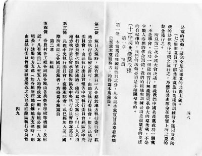 二大党章内容(部分)。通常所说二大党章是个略称,它包含着《组织章程决议案》和《中国共产党章程》,两个文件融于一体。前者是后者的总则和前提,后者为前者的延伸与具体化。