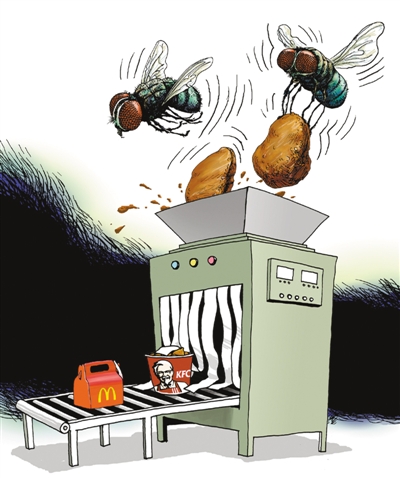 日前,作为麦当劳、肯德基供货商的上海福喜食品公司,被曝光使用过期变质肉类加工为快餐原料。大量过期的鸡肉、鸡皮重新返工,经过绞碎、裹粉和油炸后,制成麦乐鸡等产品重新出售。此外,霉变、发绿、过期数月的牛肉也被再切片使用。生产车间现场污水横流,掉地上的肉块还可扔进生产线。这正是: