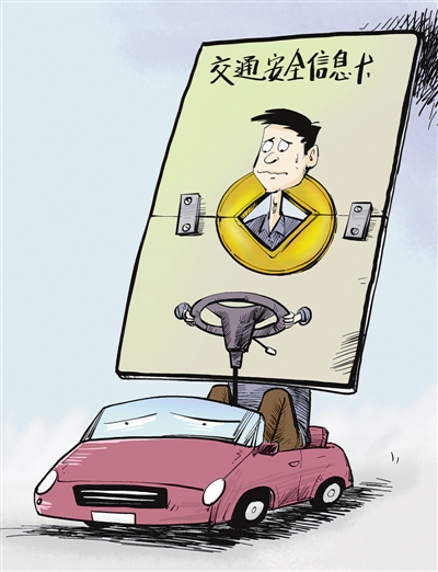 近年来,为了方便机动车司机缴纳罚款,我国多个省份推广“交通安全信息卡”。然而,记者调查发现,交通安全信息卡其实是交通部门和特定银行联合推广的信用卡,不少地区甚至以“红头文件”的方式,强制要求机动车司机办卡。这正是: