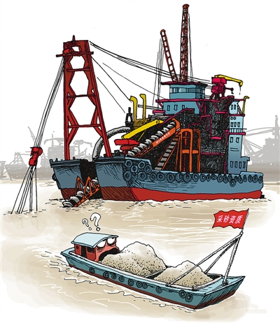 近日,记者在淮河流域安徽段调查发现,经整治后一度难见踪影的非法采砂船只,又大量出现在淮河干流400多公里河道内。近千条采砂船中,只有4条合法取得采砂资质。成规模非法采砂会造成河床塌陷,影响河水走势,甚至导致堤防崩岸。由于对当事人不涉及刑事处罚,行政处罚数额较低,使得监管打击难以形成有效震慑。