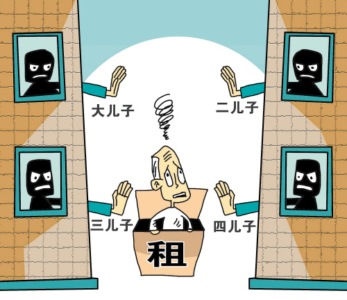 曾经看过一部古装戏剧影片《墙头记》,该剧讲述的是年老的张木匠因两儿不孝、两媳不贤,遭百般虐待,甚至被推上墙头,无人过问,最后被好友王银匠救下,由此引出一段人间悲喜剧。显然这是一部弘扬德孝文化、鞭挞不孝儿女的教育片。四个儿子分别分到4套房子及数十万补偿款,却让老父亲无家可归,不得不租住于别人的房下,也好像一部新版《墙头记》,为这4个儿子的子女后辈树立了坏榜样。