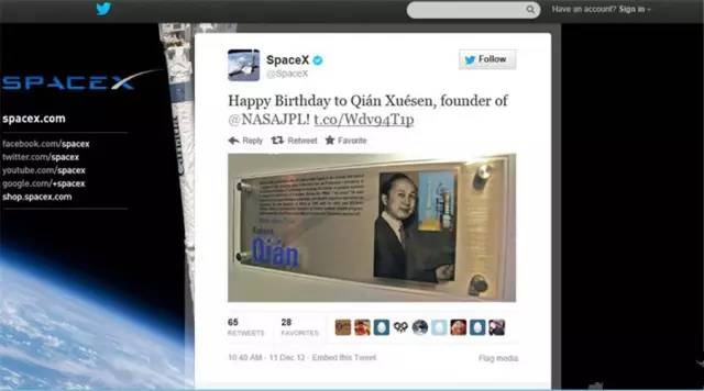 SpaceX官方推特发布推文纪念钱学森生日:“生日快乐!NASAJPL的创始人——钱学森。”