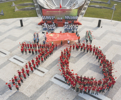 2019年国庆期间,澳门青年在《歌唱祖国》歌声中拼出“70”字样。