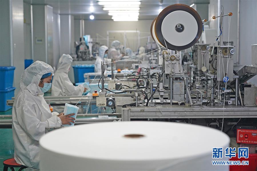 多家企业正开足马力生产口罩及各类防护物资,全力保障市场供应。新华社记者 万象 摄