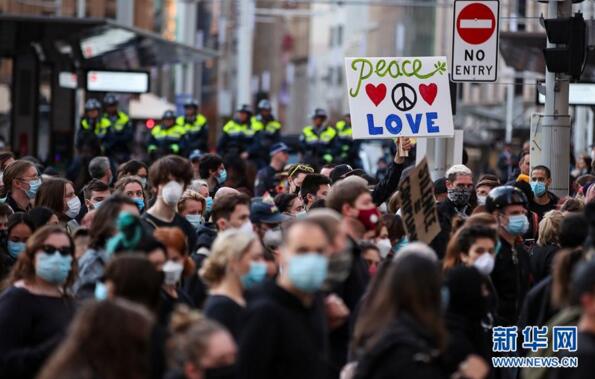 6月6日,当地民众在澳大利亚悉尼市中心参加抗议活动。 当日,澳大利亚最大城市悉尼继续举行示威活动,抗议美国明尼阿波利斯市警察执法失当致非裔男子乔治·弗洛伊德死亡,上万名民众参加游行。 t图片来源:新华网