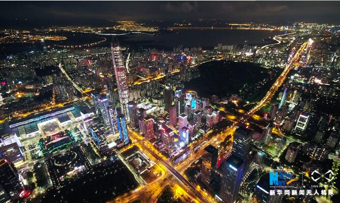 无人机航拍深圳福田中心区的夜景。新华网发(梁必成摄)
