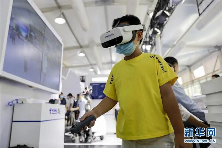 9月5日,一名小朋友在服贸会5G通信服务专题专区体验VR游戏。新华社记者 李木子 摄