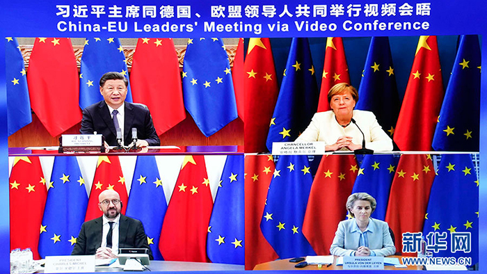 9月14日,习近平主席以视频方式会晤了欧盟轮值主席国德国总理默克尔、欧洲理事会主席米歇尔、欧盟委员会主席冯德莱恩。在当前新冠疫情深刻改变国际事务运行,全世界面临的挑战陡增,世界和平与发展遭遇前所未有挑战的背景下,中欧举行领导人会晤,向世界释放开放、合作、共赢的信号,将为全球经济复苏及走上正确的发展轨道注入强大动力。