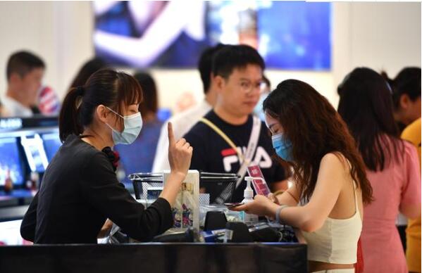 8月18日,消费者在海口市日月广场免税店购物。新华社记者 郭程 摄
