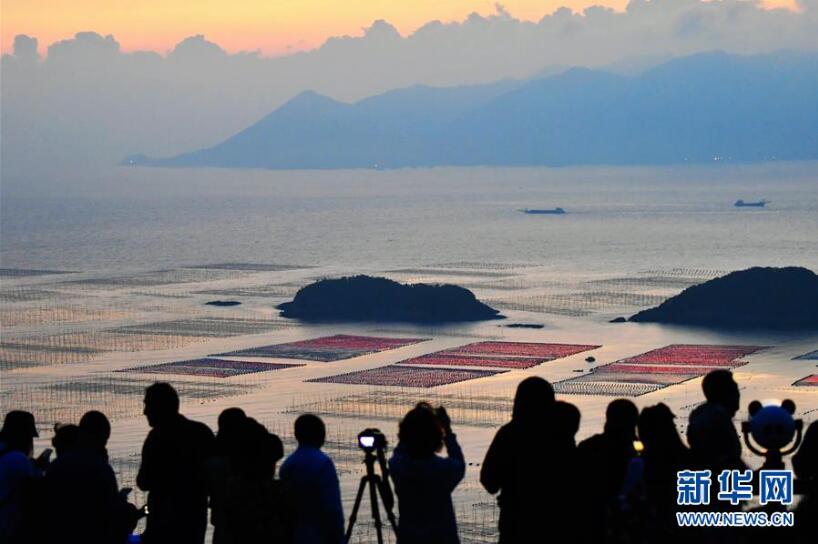 10月1日,游人在福建省霞浦县三沙镇花竹村观景平台上观赏海上日出。新华社记者 魏培全 摄