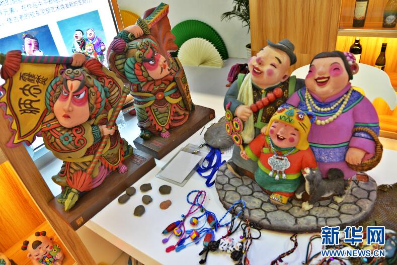 9月17日,首届中国国际文化旅游博览会在济南正式开展。从非遗产品到文创“新国潮”,各个展区展品琳琅满目,尽显齐鲁风采。图为烟台展区展出的胶东彩塑。