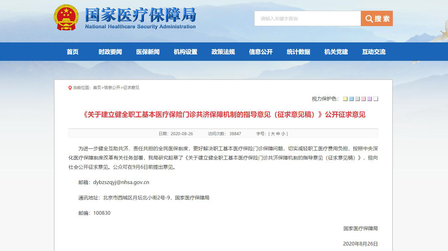 8月26日,国家医保局发布了《关于建立健全职工基本医疗保险门诊共济保障机制的指导意见(征求意见稿)》,就健全职工医保门诊共济保障、改革个人账户向全社会公开征求意见。
