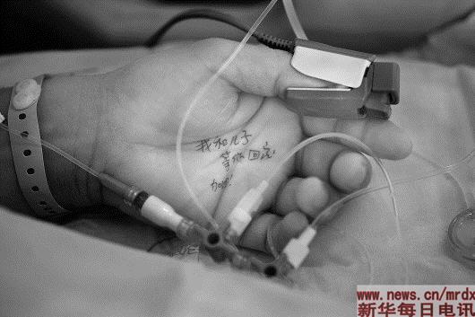手术前,患者的妻子在丈夫手上写下一行小字,林松用相机将其记录下来。图片均由受访者提供