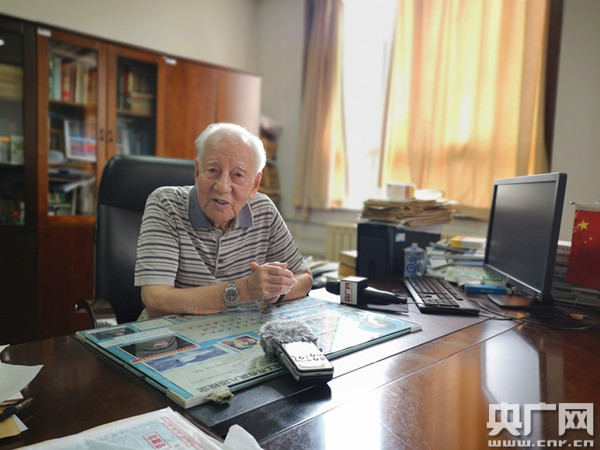 黄旭华接受央广记者采访。(央广网实习记者 尹希宁 摄)