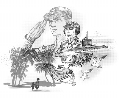 从那天起,王梅就开始在台历上打钩,一天天数着日子,这一数就是二十多天。母女俩每天都会从家属招待所牵手来到军港边的“望夫路”徘徊,走过婆娑的椰林,盼望着海天尽头出现那头巨大的黑鲸,载着她们的亲人快快归来。然而,她们每天等来的,除了失望,还是失望。眼看着孩子的开学日期日益临近,不得不离开三亚了,她们在苦苦翘盼了一个月之后,一步三回头地踏上了归程。——那一刻,那个为夫、为父者,正在波诡云谲的茫茫大海中,坚守军人的使命。