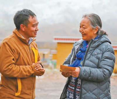 雷菊芳(右)与四川藏区的藏医学校负责人交流。资料照片