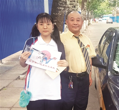能够参加今年的爱心送考,廉哲毫师傅说他很幸运, 6月7日早上7点多,他听到手机软件有一单叫车去丰台二中的,他知道二中是个考点儿,心想一定是个考生,当时车上有乘客,干着急也没办法。等这个乘客快要下车了,那一单还在叫,廉师傅毫不犹豫迅速抢单,居然成功了,距他不到一公里,乘客果然是考生父子俩。上车后得知他们分别叫了快车、专车均无人应答,碰到廉师傅真是太幸运了。廉师傅痛快地答应,明天还来接他们。“能够送孩子去参加考试,我觉得很幸福,一路上跟这父子俩说说笑笑,临了还鼓励孩子别紧张,好好考试,自己内心很有成就感。”
