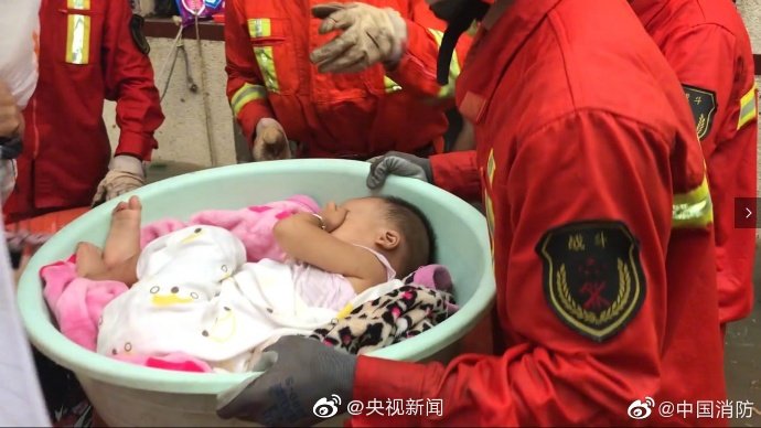8月10日,山东聊城突降暴雨致城市内涝。凌晨,消防接警有孕妇和幼儿被困。消防员赶到时,1岁多的幼儿还在睡梦中。他们将孩子放在垫了被子的洗衣盆中,蹚着积水,轻轻地将其平安转移。