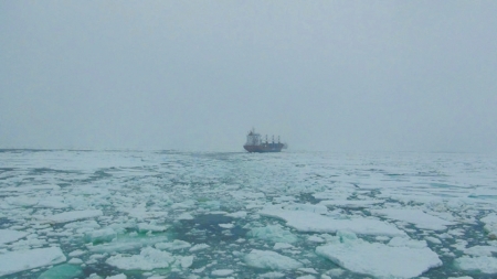 北极航道大部分时间被厚厚的冰层覆盖,因而被称为“传说中的航道”。