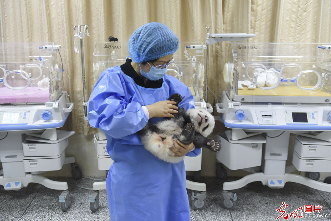 专注加上坚持,侯蓉取得了诸多成绩。当选第十一届、第十二届和第十三届全国人大代表;成为享受国务院特殊津贴专家;是第十批成都市有突出贡献的优秀专家;当选四川省劳动模范、成都市劳动模范;入围四川省学术和技术带头人后备人选……图为2019年8月29日,侯蓉为熊猫宝宝检查身体。(光明网记者 邵绪楠摄/光明图片)