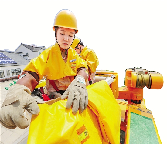 “雨水是导电的,有一点雨都无法从事带电作业。”张荟文说,虽然太阳底下非常热,但是为了能够尽快完成作业,他们还是希望太阳能够持久一些。