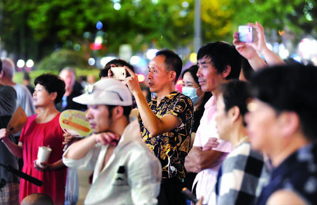这里是每个人的舞台!星期五的夜晚,就让我们相约来听一场不要门票的“马路演唱会”吧。愿音乐像糖,让你我的生活甜滋滋。(劳动报首席记者 包璐影 摄影 王陆杰)
