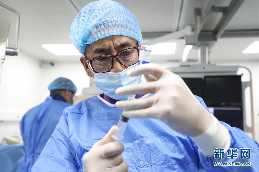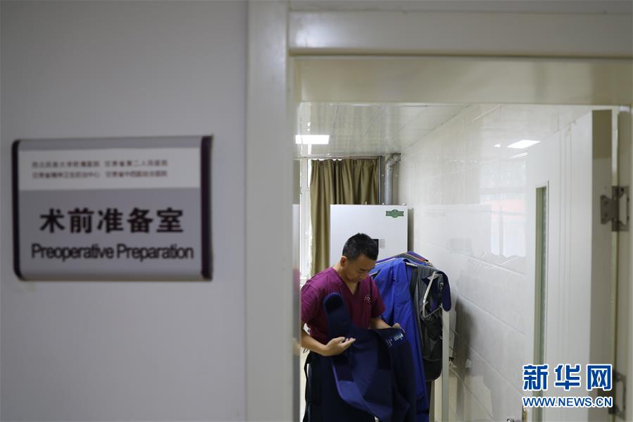 8月17日,甘肃省第二人民医院介入医学科主任医师余新林在进行术前准备工作。 新华社记者 张睿 摄