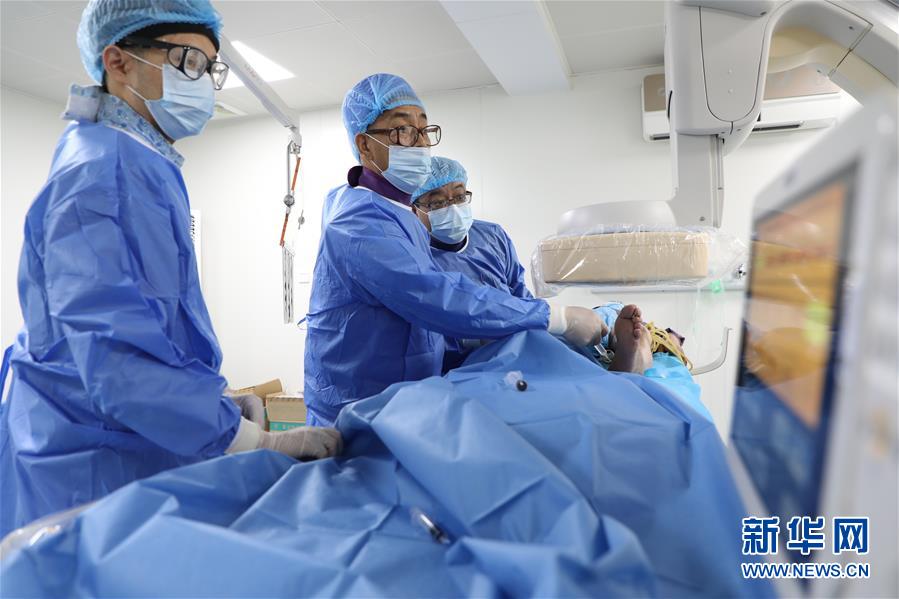 8月17日,甘肃省第二人民医院介入医学科主任医师余新林(中)在手术中。 新华社记者 张睿 摄