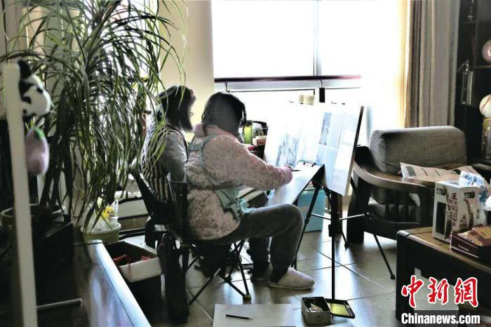 吴彧雯和屈羡一起画画。 受访者供图