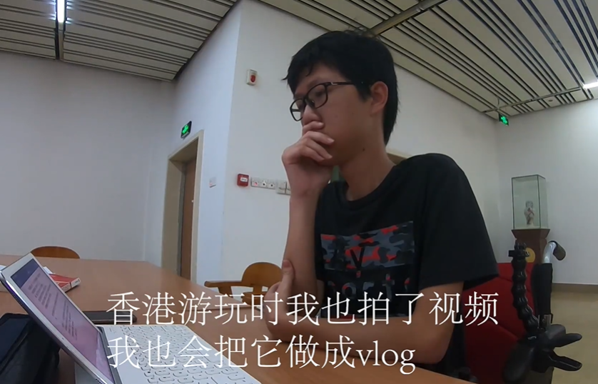 在方坚泽的Vlog里,你可以跟着他的镜头一起去图书馆,去实验室,去吃烧烤……他把镜头放在电动轮椅上,这样的视角是特别的。