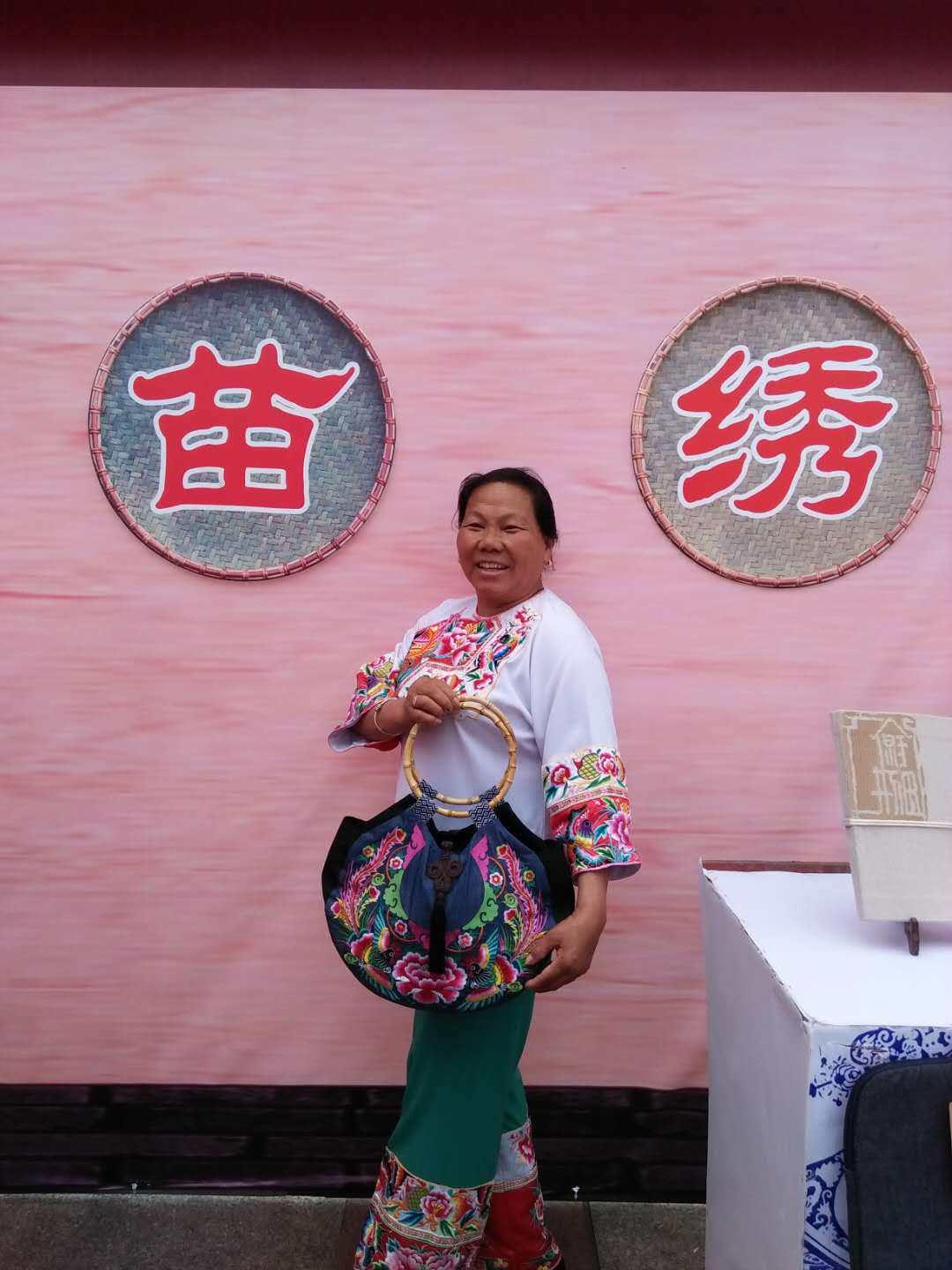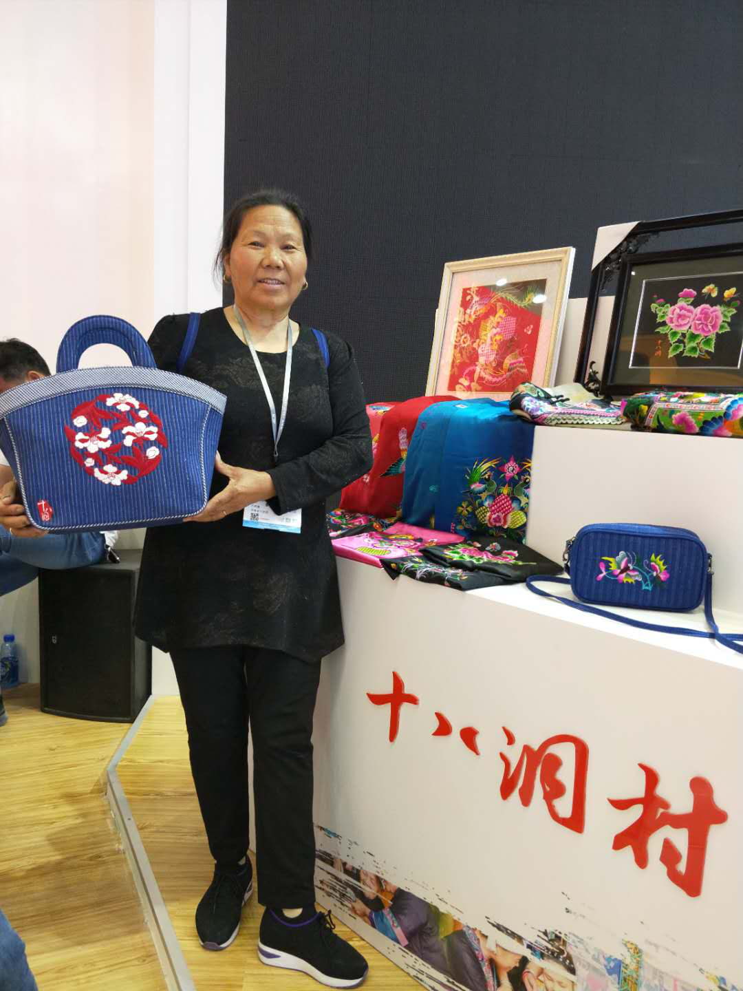 趁热打铁,石顺莲主动寻找机会,当地政府也积极帮助对接。2019年,十八洞村苗绣参加了第15届深圳文博会。石顺莲作为苗绣传承人,不仅现场展示苗绣针法,还组织村里的文艺队,穿上精美的苗族服饰,设下拦门酒,唱起动听的苗歌,想方设法留住人们的脚步,吸引更多人了解苗绣。展会结束后,石顺莲和合作社收获满满,她们带去参展的书签、手提包等苗绣产品全部售罄,广东的一些企业还与她们达成了初步合作意向。