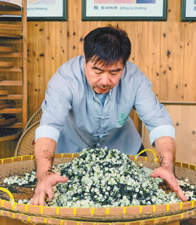傅天龙说,传统的茉莉花茶主要是茉莉花与绿茶的结合。如今,如何通过传统窨制工艺实现茉莉花与红茶、白茶等其他茶种的巧妙结合,成为傅天龙新的探索方向。“茉莉花茶的窨制需要花一辈子去潜心钻研。”说着,傅天龙沏上一壶茉莉花茶。凑近一闻,茉莉花香沁人心脾;喝上一口,茶的醇厚带着花的甘甜,仿佛置身细雨朦胧的初春,但又不乏夏日的亮丽清爽,两个季节在唇齿间奇妙相遇……(记者 邵玉姿摄影报道)