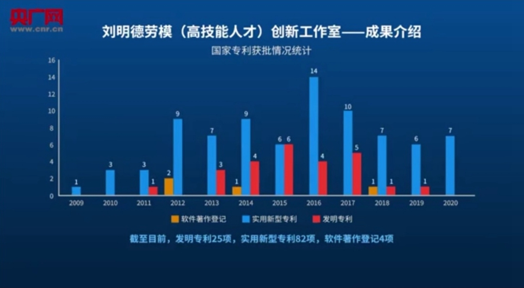 2016年8月,“刘明德劳模(高技能人才)创新工作室”成立,迄今累计获得111项国家专利。