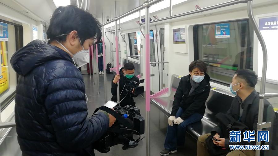 2020年3月,中央广播电视总台新闻中心记者董倩(右二)在武汉采访报道地铁重启。新华社发